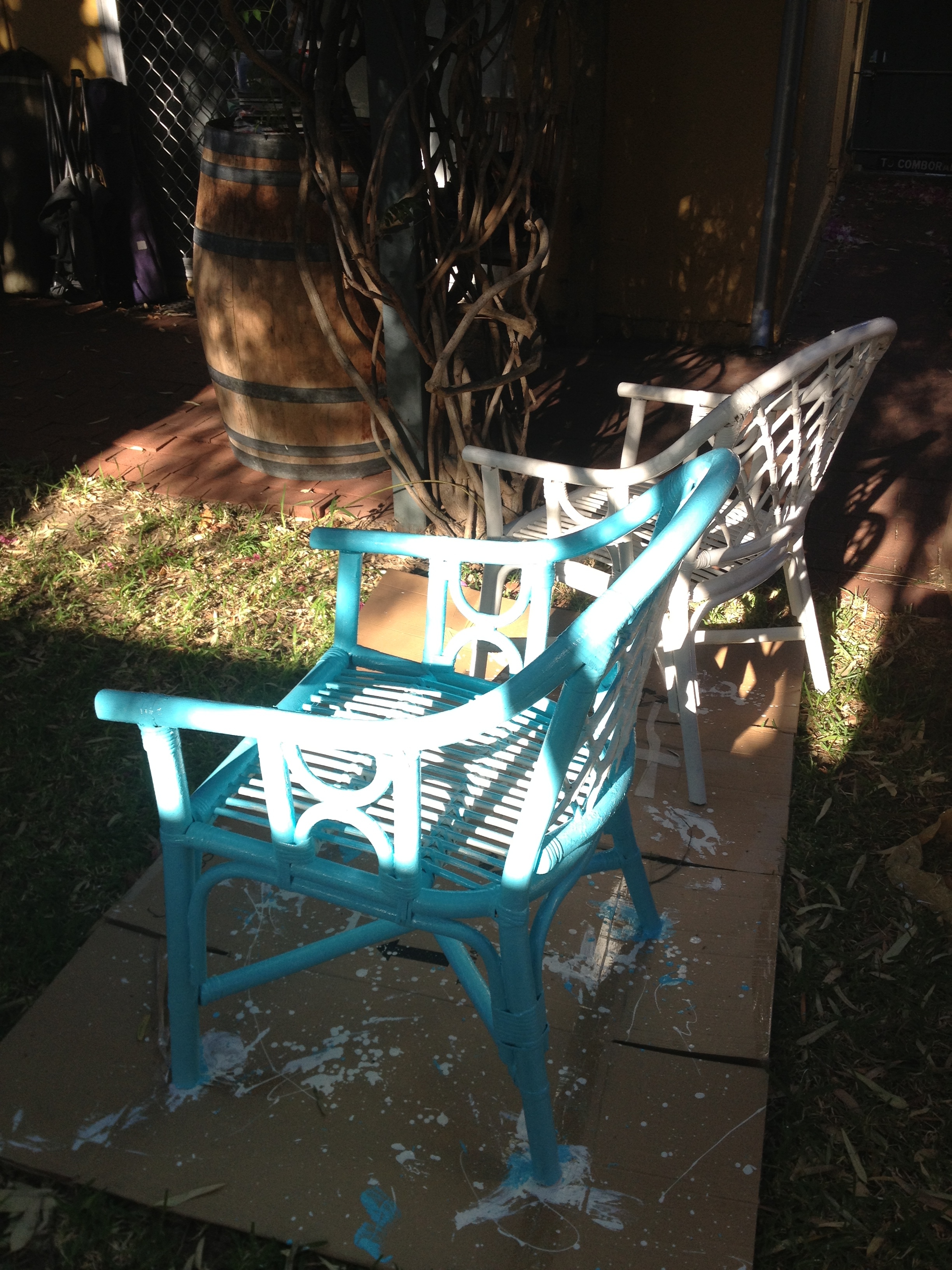 Stage two of updating verge collected cane chairs