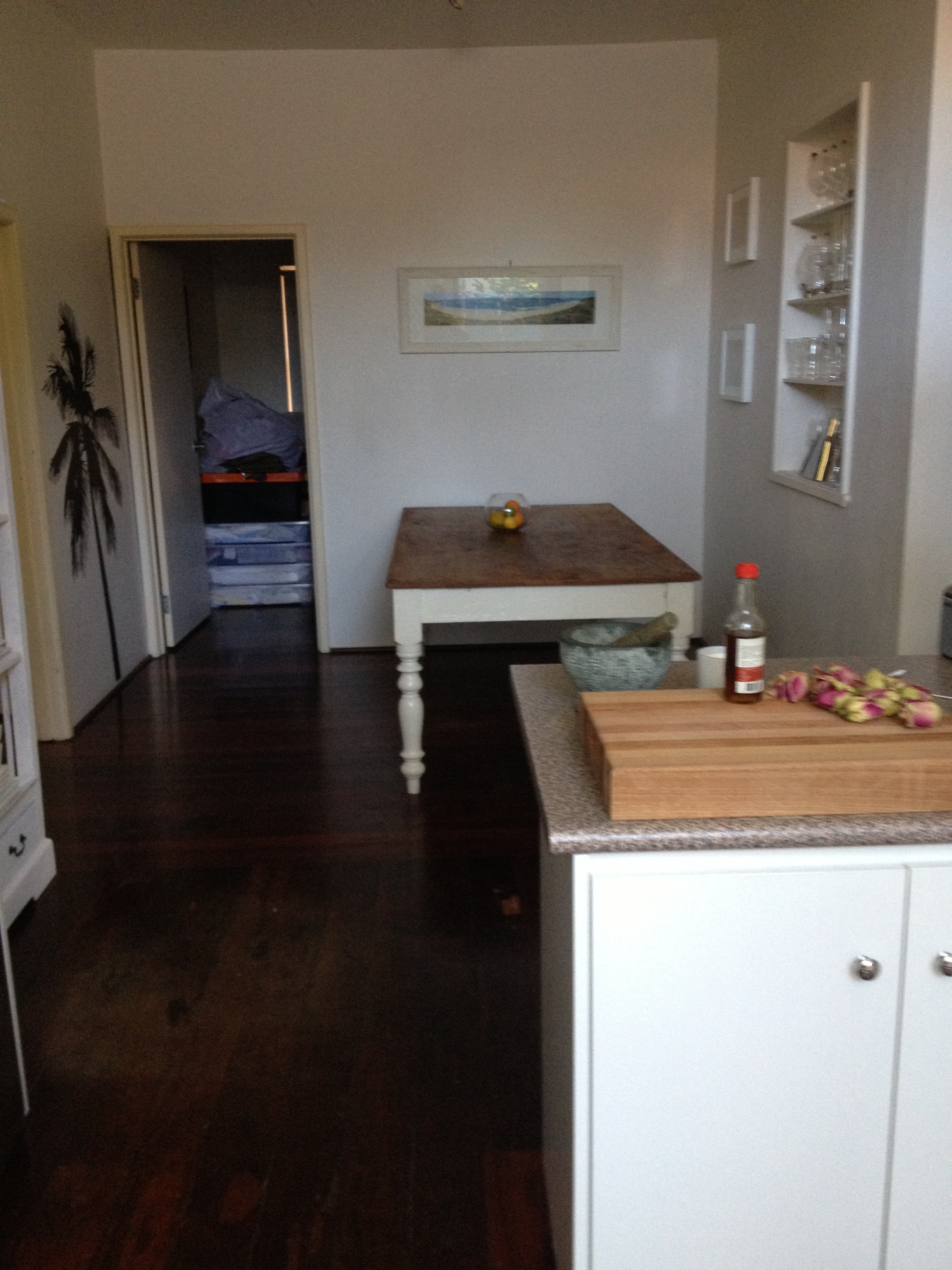 A year and half ago we moved into a super cute but very dated railway cottage in a beachside suburb of Perth, Western Australia. The house was old.  An original workers cottage with a cheap 1970s mini extension. Whilst the house had all the usual character features of Australian cottage it was small, run down and the little work that had been done to ‘spruce’ it up consisted of purple feature walls, a salmon coloured kitchen and a sage green themed bathroom. It was what real estate agents refer to as a ‘Premium Land Holding’. We too feel in love with the location and initially considered the house as a temporary feature. Given that we weren’t sure what we were going to do with the house (renovate/ knock it down and rebuild/ sell after a few years) there was a number of minor alteration that I considered crucial to our enjoyment of the house. I used all my negotiating skills to convince my husband that my plan was brilliant. Not only would it only cost a few hundred dollars it would simultaneously transform the feeling of the house. Needless to say a few days later he was the first to aglee that my plan was indeed brilliant.